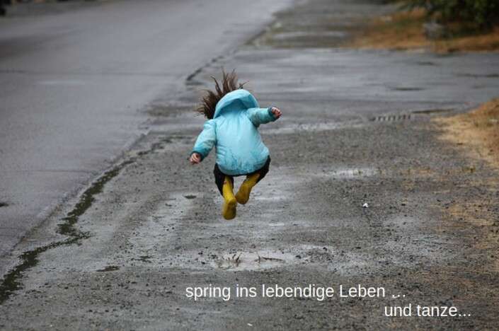 Auch wenn die Themen, die ich mit ihr (Mutter Erde) bewege manchmal schmerzhaft sind, bleibt, wenn viele Tränen geweint sind eine Art von Verbundenheit mit dem Leben; ein Durchdrungensein, das schwer zu beschreiben ist – vielleicht passt es am ehesten zu dem Bild oben, das ich als Titel für diesen Newsletter gewählt habe. Für mich spricht es von rückhaltloser Lebendigkeit, vom Mut „Ja“ zu den Pfützen auf meinem Weg zu sagen und von verkörperter Dankbarkeit und Begeisterung am Leben zu sein – manchmal gelingt mir das.